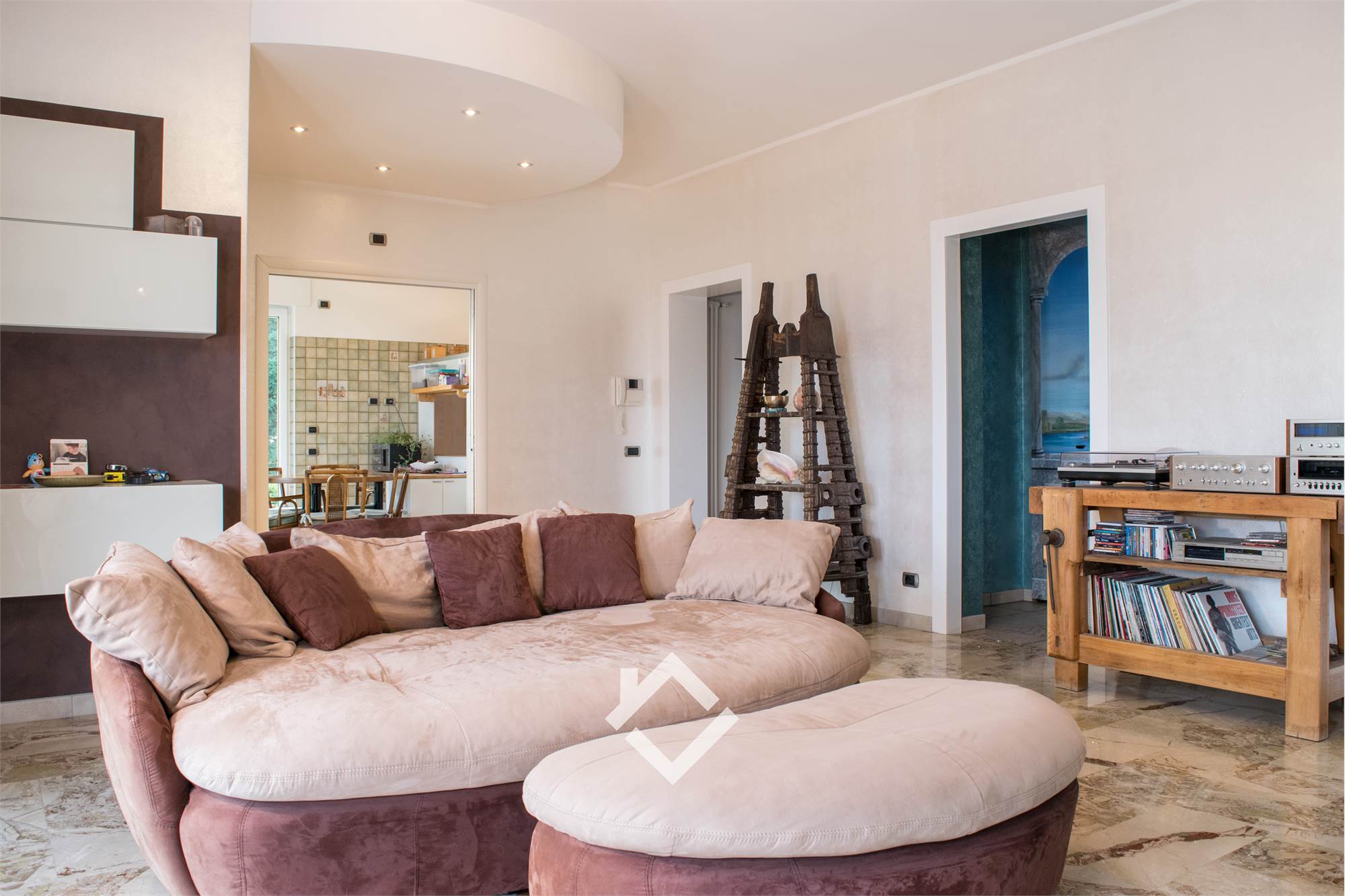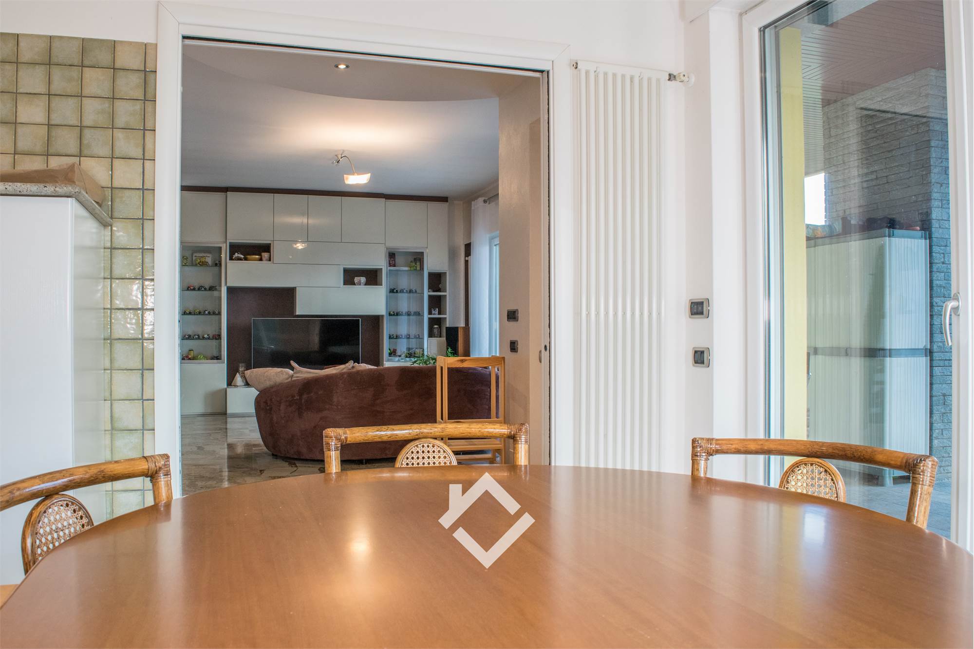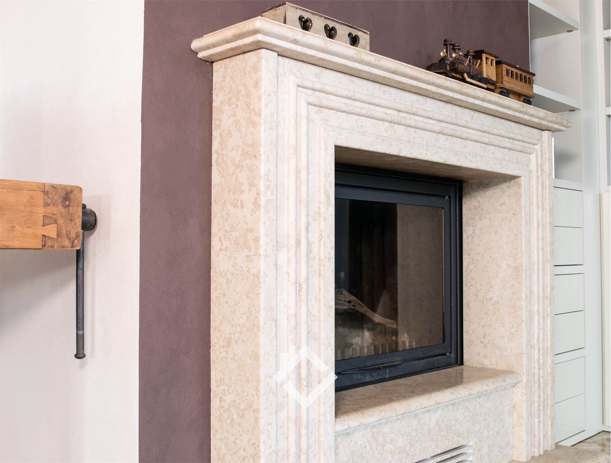 L'ingresso conduce ad un ampio soggiorno con grandi vetrate, che donano un'ottima luminosità naturale e creano un ambiente accogliente, impreziosito da un elegante camino.